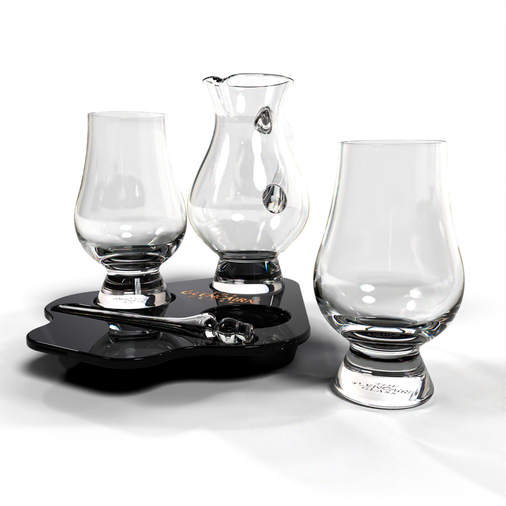 Settet inneholder to klassiske Glencairn-glass som har blitt kåret til det offisielle whiskyglasset og har mottatt The Queens Award for Innovation i Storbritannia, en pipette, en Glencairn vannkanne i blyfri krystall og et brett i polert og lakkert tre.